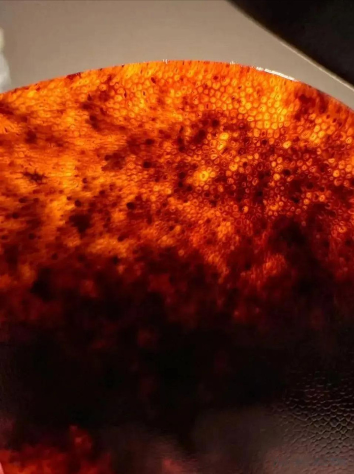 颜色特别有意思,如果不是纯黑的料子,盘玩后不会出现刺眼的惨白或亮黄,而是像融化的琥珀里掺了墨汁,深些的则像冲泡好的红茶汤。仔细看还能发现颜色深浅不一,有的地方像水墨画般自然晕染,带着些黑褐色的斑点或丝缕纹路,像有人随手用毛笔点染过似的。